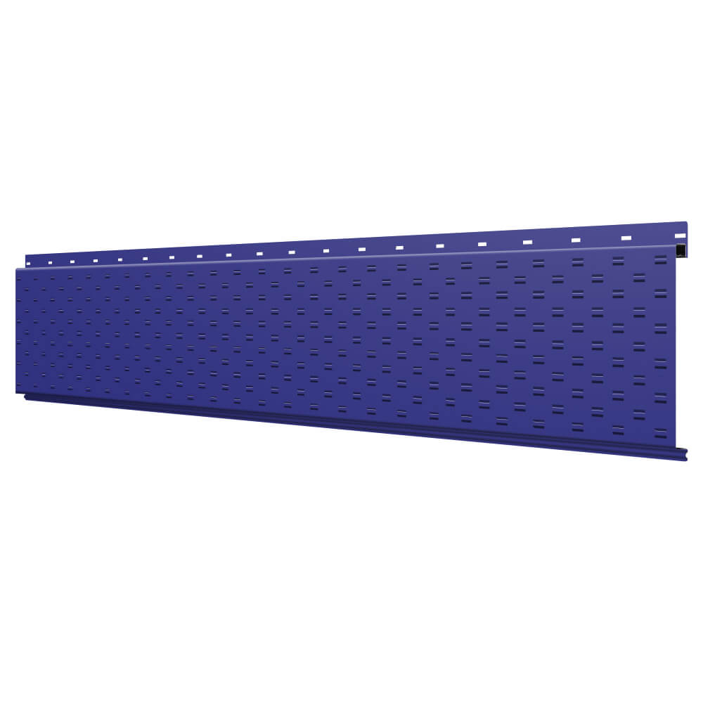 Линеарная потолочно-стеновая панель с ПЕРФОРАЦИЕЙ для вентиляции цвет RAL5002 Синий Ультрамарин применяется в качестве софитов для подшивы крыши, наружной и внутренней отделки потолков, стен, фронтонов фасада дома в Симферополе.
