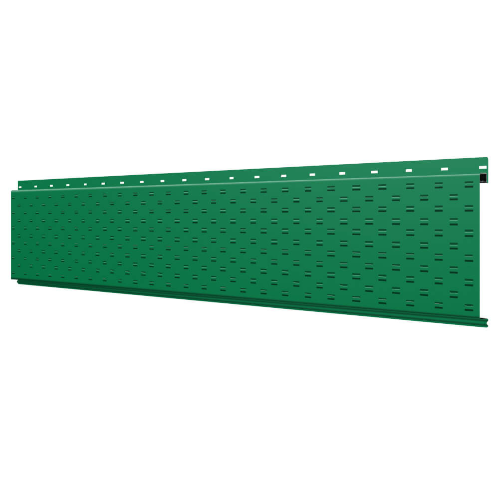Линеарная потолочно-стеновая панель с ПЕРФОРАЦИЕЙ для вентиляции цвет RAL6029 Зеленая Мята применяется в качестве софитов для подшивы крыши, наружной и внутренней отделки потолков, стен, фронтонов фасада дома в Симферополе.