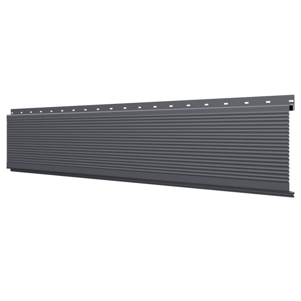 Линеарная потолочно-стеновая панель РИФЛЕНАЯ усиленная цвет RAL7024 Серый Графит применяется в качестве софитов для подшивы крыши, наружной и внутренней отделки потолков, стен, фронтонов фасада дома в Симферополе.