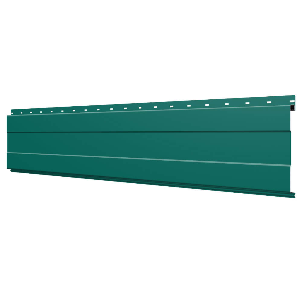 Линеарная потолочно-стеновая панель с ПОЛОСОЙ усиленная цвет RAL6026 Опал применяется в качестве софитов для подшивы крыши, наружной и внутренней отделки потолков, стен, фронтонов фасада дома в Симферополе.