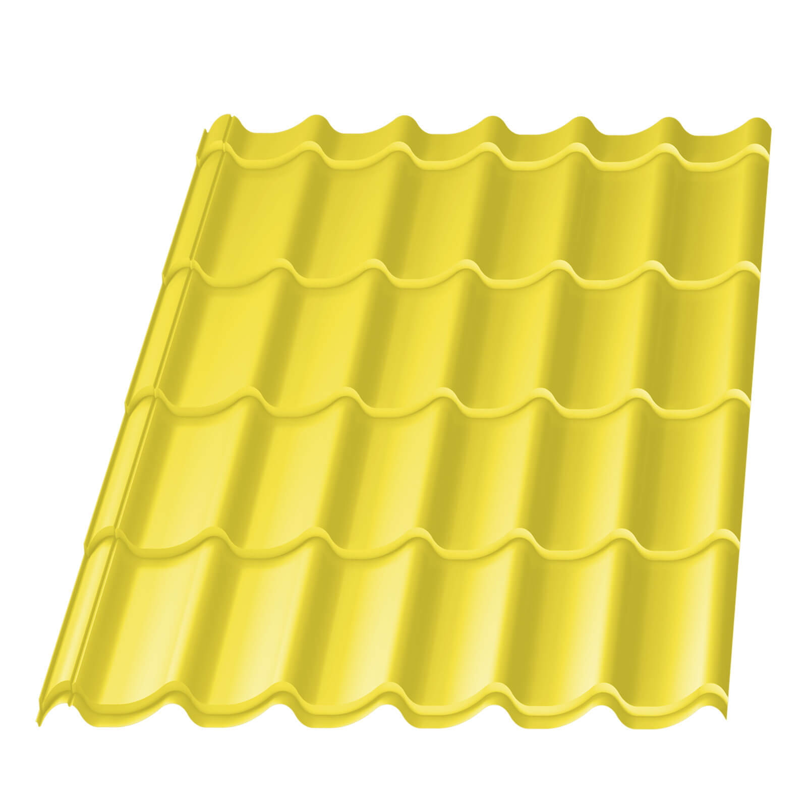 Металлическая черепица Меркурий RAL 1018 Желтый имеет профиль внешне на кровле напоминающий классическую керамическую черепицу. Меркурий — это обновленный аналог профиля металлической черепицы для кровли крыши. Форма профиля имеет богатый внешний вид напоминающий небольшие набегающие волны. Лучшие показатели герметизации сделали профиль Меркурий гарантом стабильной и долговременной службы на крышах в Симферополе. Данный профиль отличается не только своим качеством, но и благородным внешним видом.