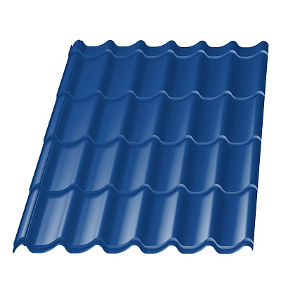 Металлическая черепица Меркурий цвет RAL 5002 Синий Сигнал имеет профиль внешне на кровле напоминающий классическую керамическую черепицу. Меркурий — это обновленный аналог профиля металлической черепицы для кровли крыши. Форма профиля имеет богатый внешний вид напоминающий небольшие набегающие волны. Лучшие показатели герметизации сделали профиль Меркурий гарантом стабильной и долговременной службы на крышах в Симферополе. Данный профиль отличается не только своим качеством и практичностью, но и благородным внешним видом.