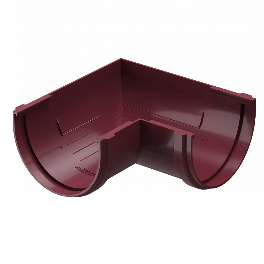 Угловой элемент желоба универсальный ДЕКЕ STANDARD d120мм 90 градусов цвет RAL 3005 Красный в Симферополе. Угловые элементы устанавливаются как на внешних, так и на внутренних углах кровли и предназначены для соединения желобов.