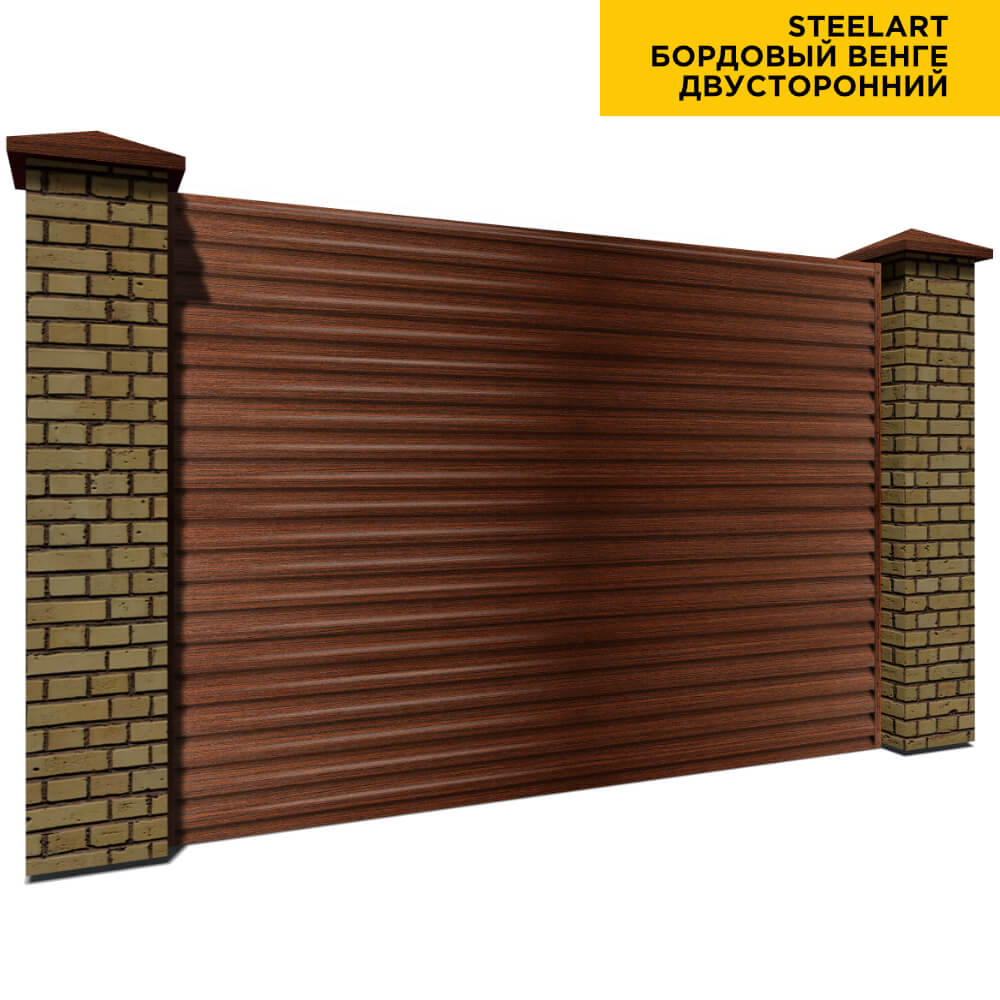 Ламель Еврожалюзи металлическая S-образная, цвет под дерево Бордовый Венге SteelArt Россия двухстороннее покрытие, длина любая кратно 1см под заказ - для забора-жалюзи, беседки, перголы в Симферополе.