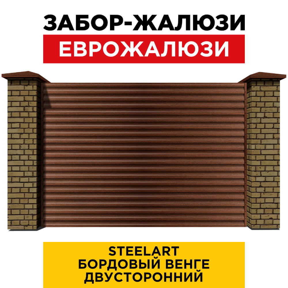 Ламель Еврожалюзи металлическая S-образная, цвет под дерево Бордовый Венге SteelArt Россия двухстороннее покрытие, длина любая кратно 1см под заказ - для забора-жалюзи, беседки, перголы в Симферополе