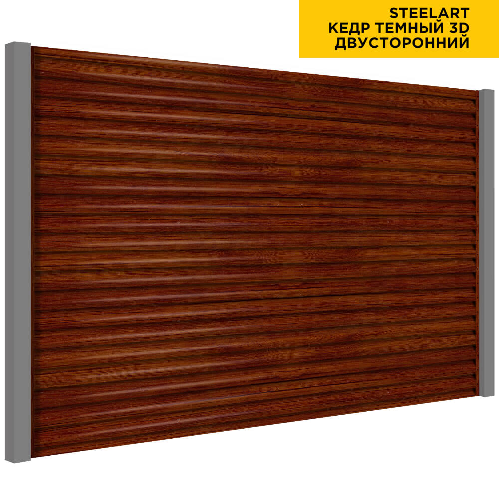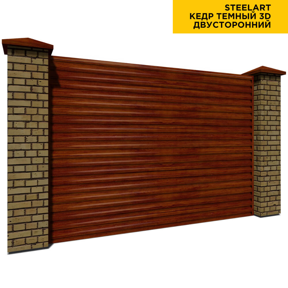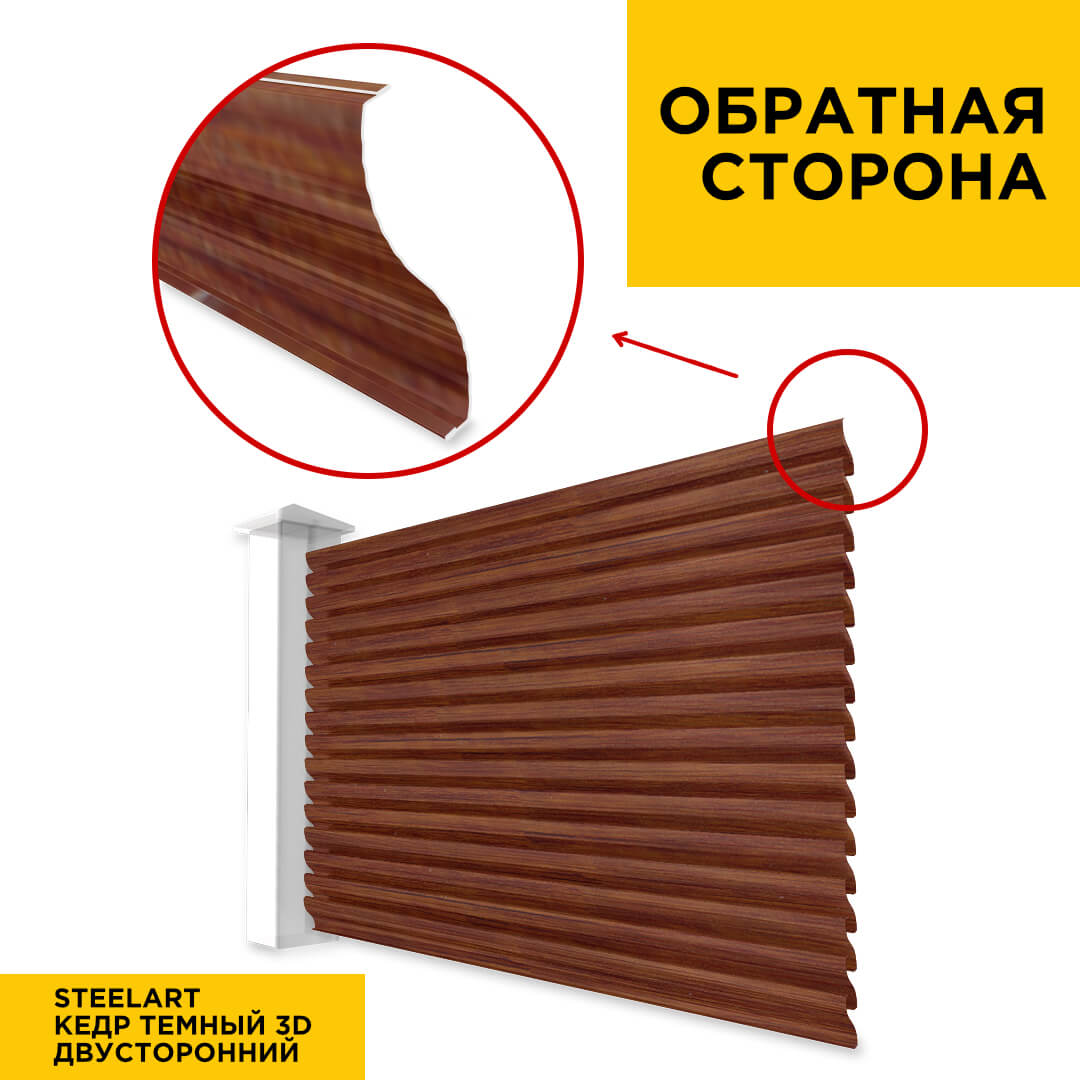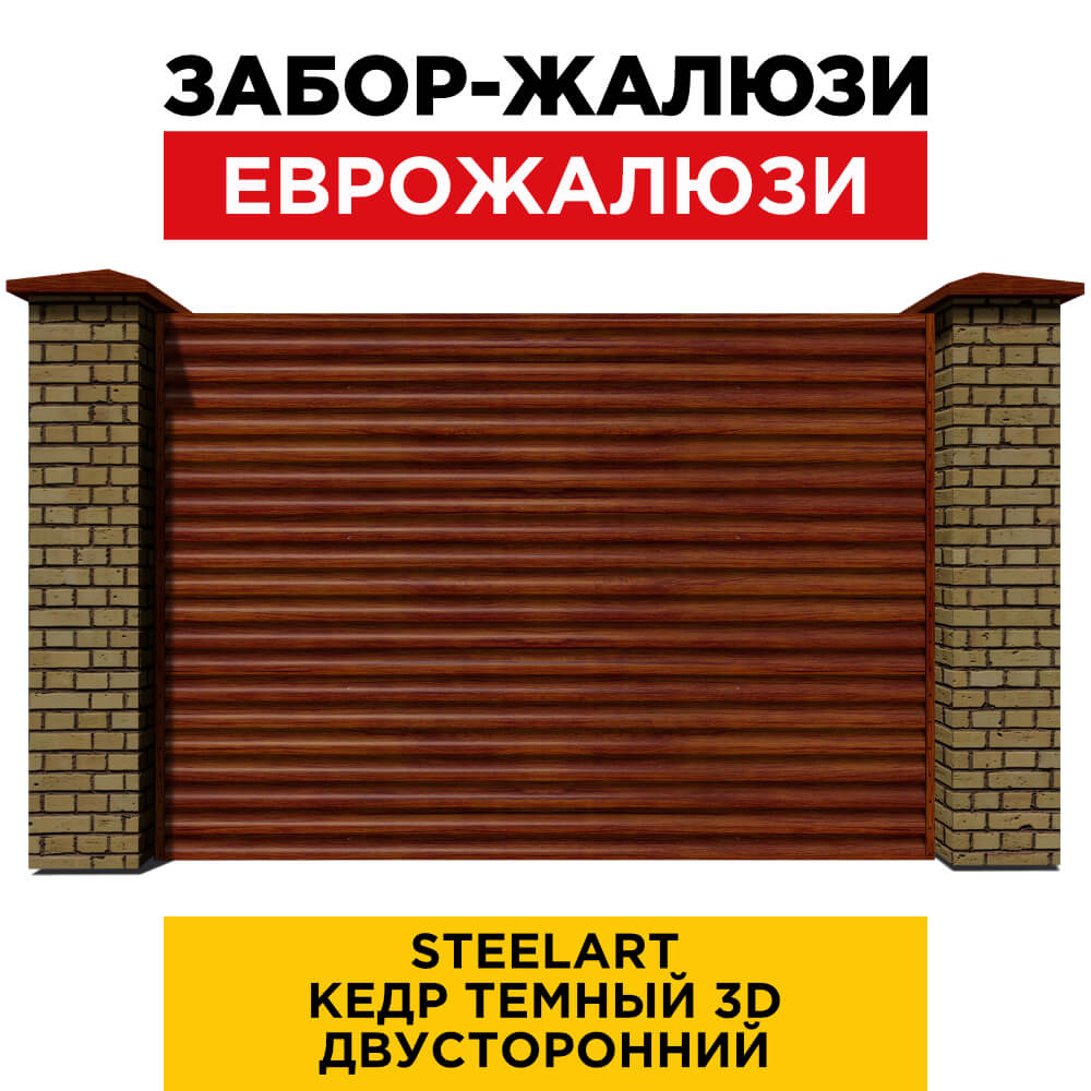 Ламель Еврожалюзи металлическая S-образная, цвет под дерево Кедр Темный 3D SteelArt Россия двухстороннее покрытие, длина любая кратно 1см под заказ - для забора-жалюзи, беседки, перголы в Симферополе