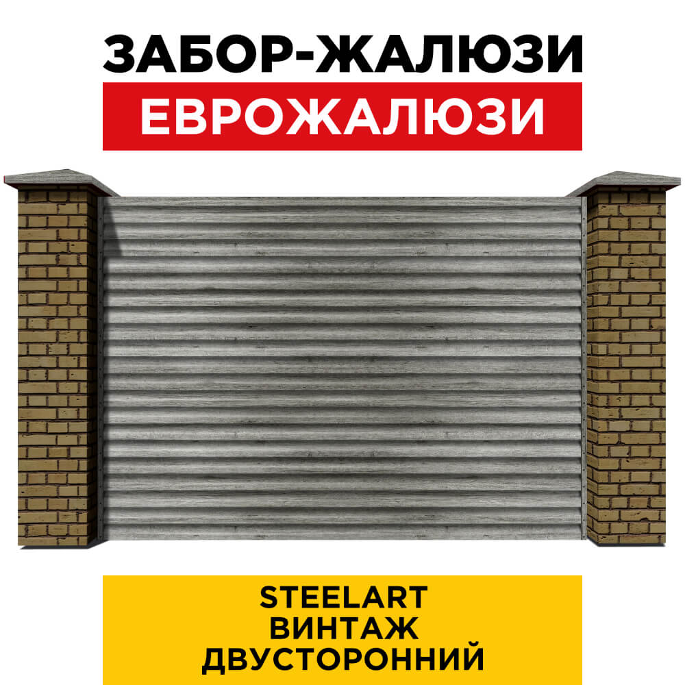 Ламель Еврожалюзи металлическая S-образная, цвет под дерево Винтаж SteelArt Россия двухстороннее покрытие, длина любая кратно 1см под заказ - для забора-жалюзи, беседки, перголы в Симферополе