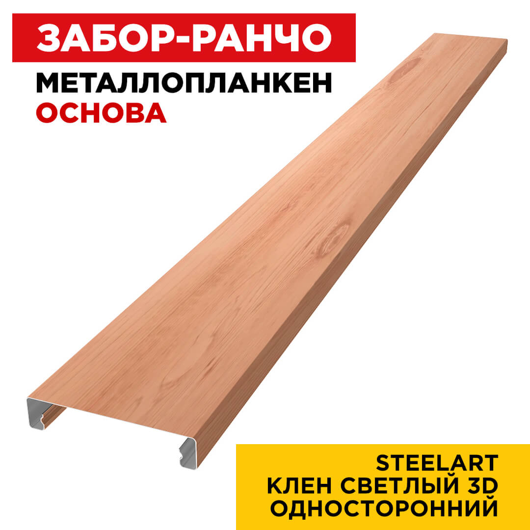 Ламель Металлопланкен ОСНОВА 100мм на 20мм Клен Светлый 3D SteelArt Россия