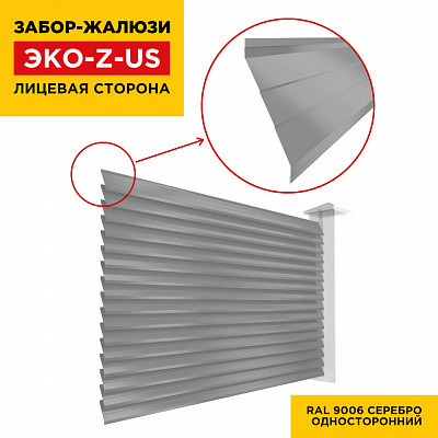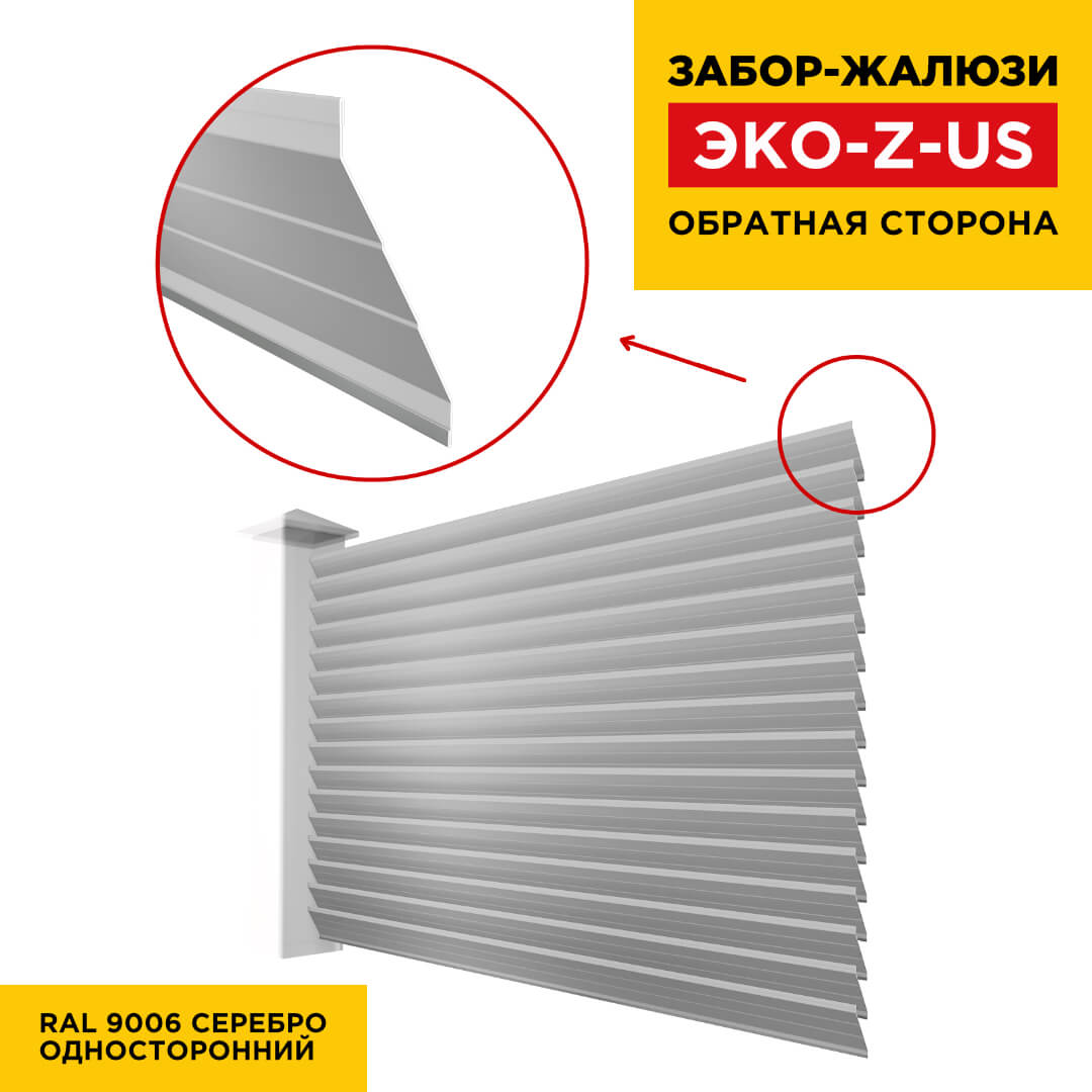 Ламель металлическая Z-образная усиленная ЭКО-Z-US, цвет RAL 9006 Серебро, длина любая кратно 1см под заказ - для забора-жалюзи, беседки, перголы в Симферополе