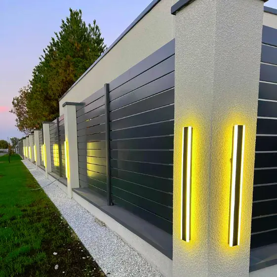 Забор в стиле ранчо выполнен из металлопланкена цвет RAL 7024 Серый Графит. Строгий графитовый оттенок придает ограждению современный и солидный вид, а аккуратные линии панелей гармонично вписываются в общий ландшафт. Особым акцентом стала неоновая подсветка, в вечернее время она эффектно подчеркивает структуру забора, создавая атмосферу безопасности и уюта, а также выделяя участок среди окружающих.